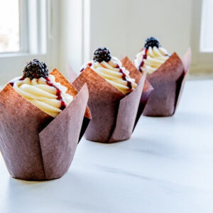 We offer solid, patterned, and Tulip cups in assorted colors. Made of grease resistant paper, many of our cups are designed for de-nesting. Our unique baking tray system provides a safe way to transport and sell cupcakes or muffins.