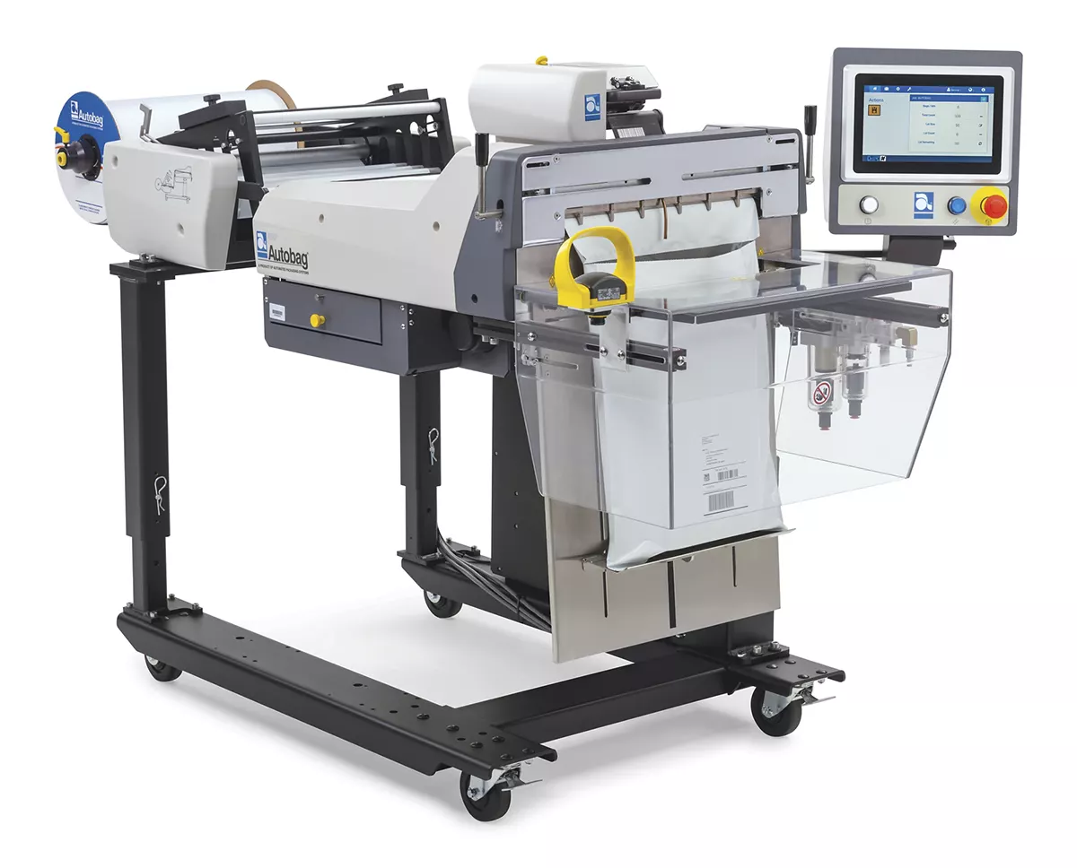 | Configuration operating at speeds up to 40 bags per minute (BPM). These high-speed bagging system is ideal for large packaging operations. The AUTOBAG® 650 includes many of the same conveniences of the standard AUTOBAG® 500 with the addition of a thermal transfer printer. This provides next-bag-out printing technology that is ideal for short run, order fulfillment and ecommerce applications. |