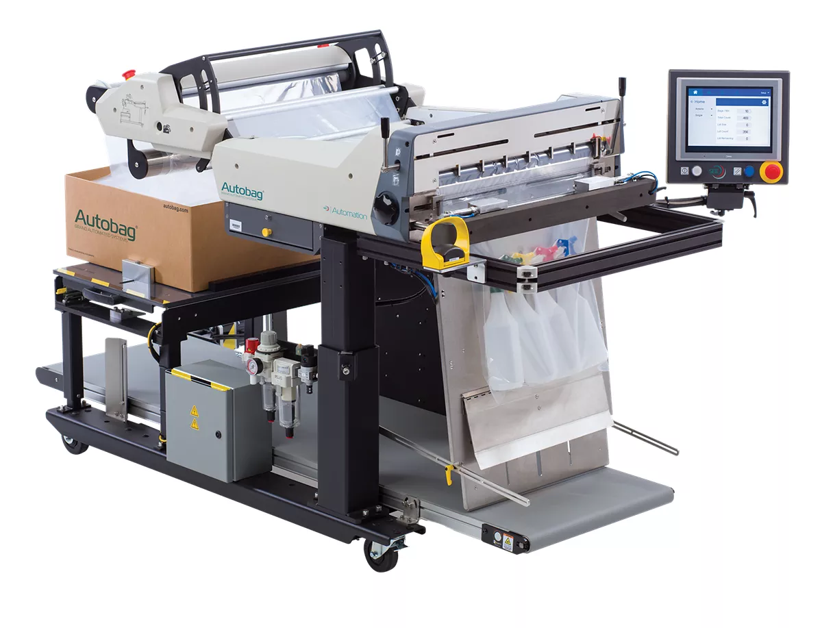 | AUTOBAG® Brand 800S Series Bagging Systems are uniquely designed to provide enhanced productivity for large bag packaging applications up to 22” wide. These systems feature a breakthrough bag opening technology that securely grips and holds the bags open in place, creating a large opening for easy loading of large products and multiple items. The ergonomic design provides flexible compatibility with AUTOBAG® counters, scales, and infeeds. The intuitive interface provides easy troubleshooting and diagnostics. Production data retreival simplifies maintenance and optimizes productivity. These baggers easily integrate with ecommerce warehouse management systems and other auxiliary equipment such as conveyors or scanners. |
