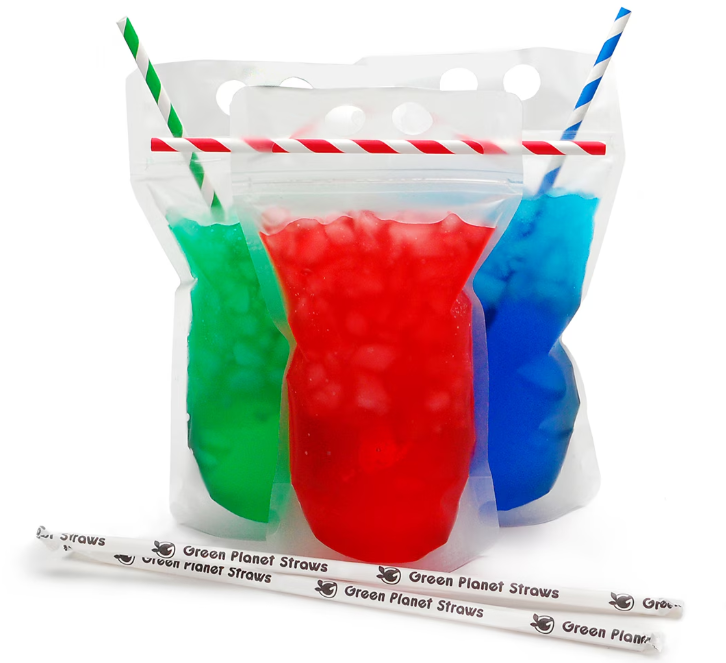 Enjoy refreshing drinks on the go with the Beverage-To-Go Pouch. This innovative 16 ounce drink pouch is equipped with a leak-resistant zipper closure to lock in beverages and prevent accidental spills. Simply open the pouch, pour in your beverage, insert a straw through one of the smaller holes, close the seal on either side of the straw, and enjoy! This BPA-free plastic drink pouch has 2 large center holes that provide a comfortable way to hold your fresh lemonade, strawberry smoothie, iced green tea, or other cold beverage. These pouches are a fun and memorable way to serve patrons and set your establishment apart.