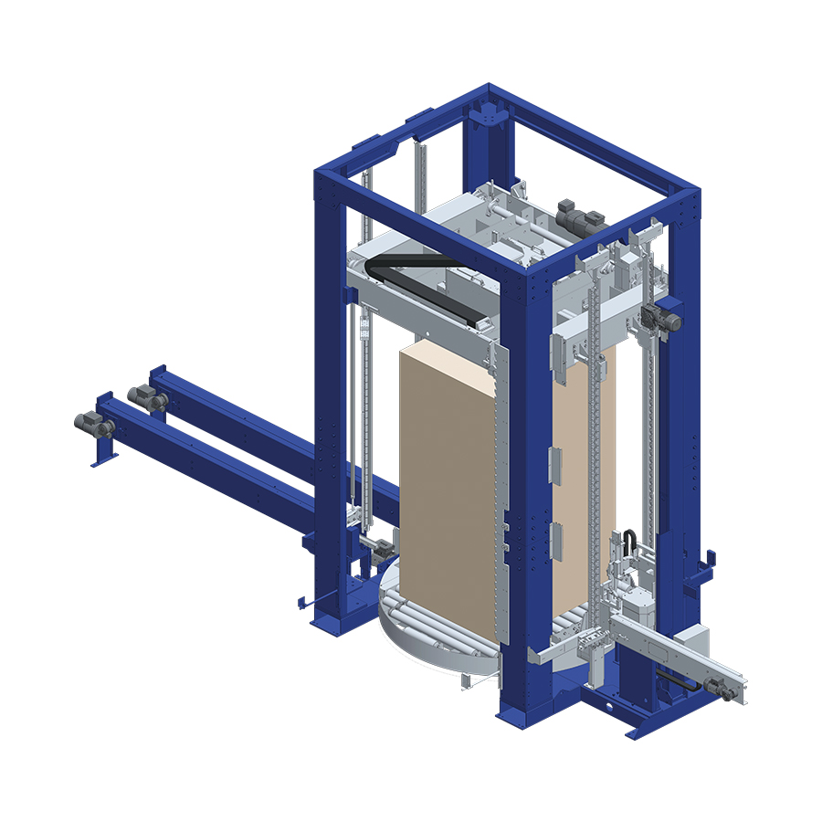 | With the automatic combined winding machine model AVFP2 it is possible to package cardboard pallets in a completely automatic way by binding them, even crosswise, with one or more thermo-welded polypropylene or polyester straps as well as wrapping them with CCDPE extensible film. The machine consists in a sturdy structure which supports all the combined winding machine’s components. |