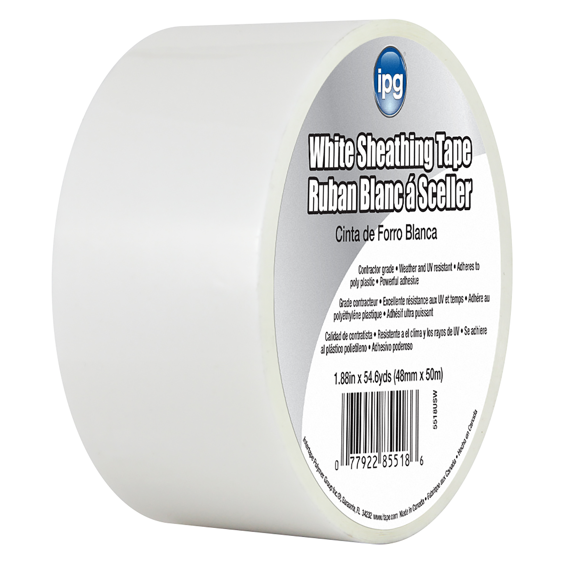 Short Description: Sheathing Tape, 1.88″ x 54.6 yd, White (Single Roll)