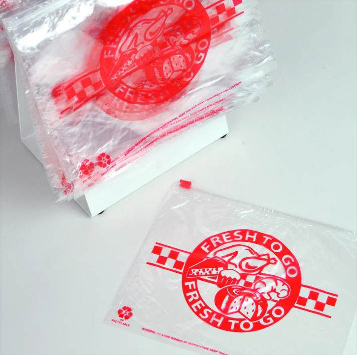 | 10″ X 8″ | Slide Seal Saddle Pack Deli Bag — Printed “Fresh to Go” Red Print | 1.20 mil | 1000 |