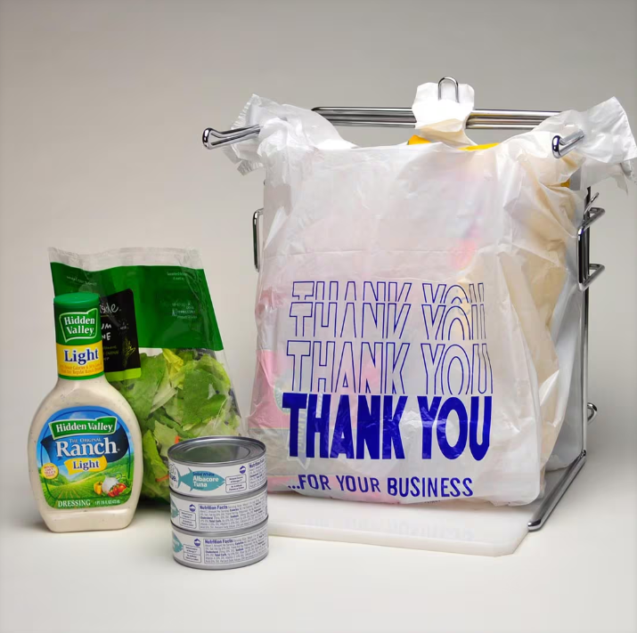 10″ X 6″ X 20″ “Thank You” Printed T-Shirt Bag (White) 0.48 mil 2000